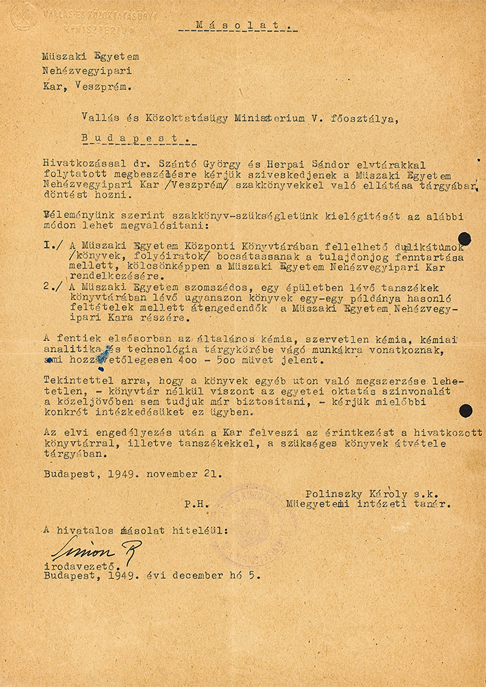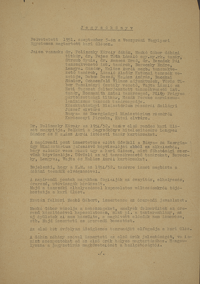 Létrejön a Budapesti Műszaki Egyetem Nehézvegyipari Kara Veszprémben, a mai A épületben