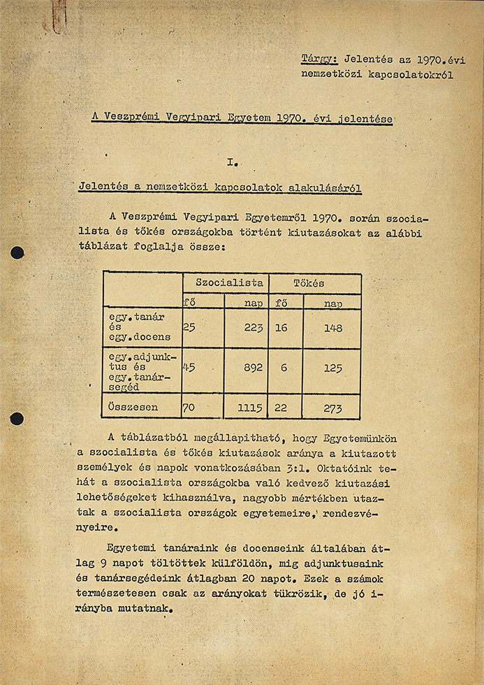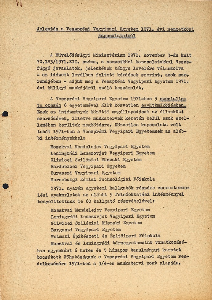 Az Egyetem már az 50-es évektől kezdődően gazdag külkapcsolatokat ápolt külföldi intézményekkel. Ezek a külkapcsolatok nemcsak az oktatók és hallgatók munkáját segítették, de hozzájárultak az Egyetem nemzetközi elismertségéhez és a tudományos közösséghez való kapcsolódásához is. Kezdetektől fogva együttműködött a Magyar Ásványolaj és Földgáz Kísérleti Intézettel (MÁFKI), valamint a Nehézvegyipari Kutatóintézettel (NEVIKI), amelyek egykori székházai az Egyetem mai „M” és „N” épületei. Jelentős előrelépés volt 1990-ben a Tanárképző Kar megalakulása, amelynek következtében az intézmény új neve Veszprémi Egyetem lett.