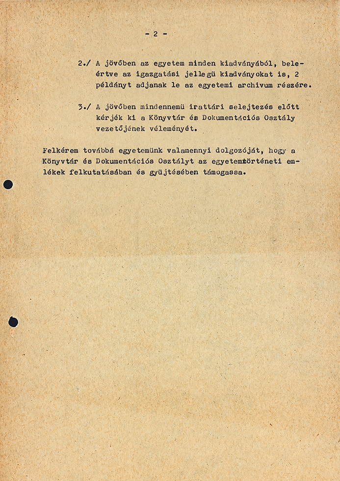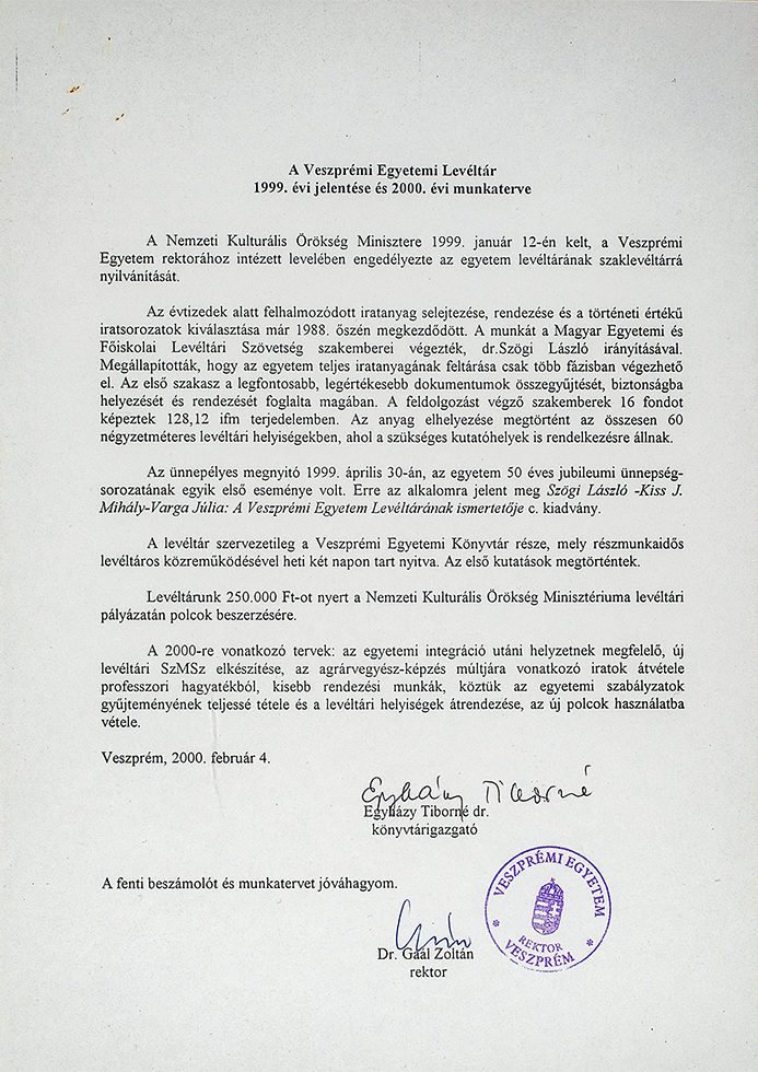 A Levéltár előzményeként az Egyetemi Archívum létrehozása